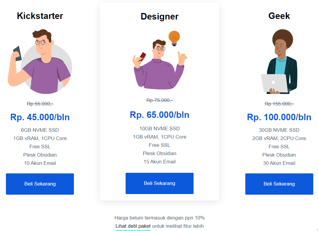 Untuk pricing WordPress hosting saat saya membuat review ini dimulai dengan 45 ribu/bulan.