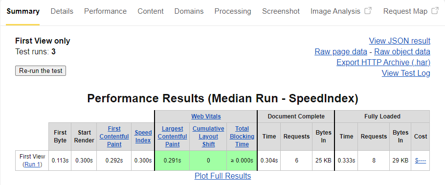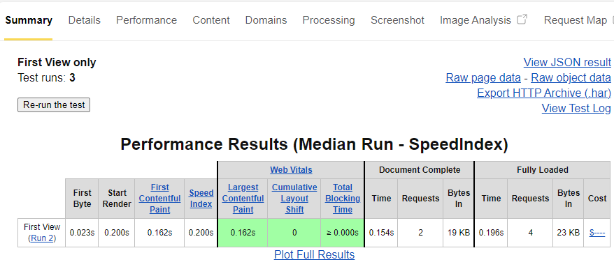 Dari pengujian diatas, terlihat bahwa ttfb dari server singapura untuk versi default adalah 113ms dan versi optimized adalah 23ms.
