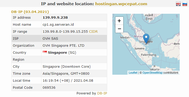 Lokasi server yang dimiliki oleh hostingan berada di singapura.