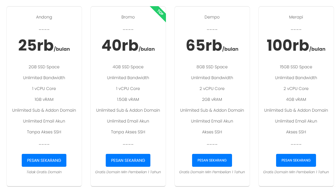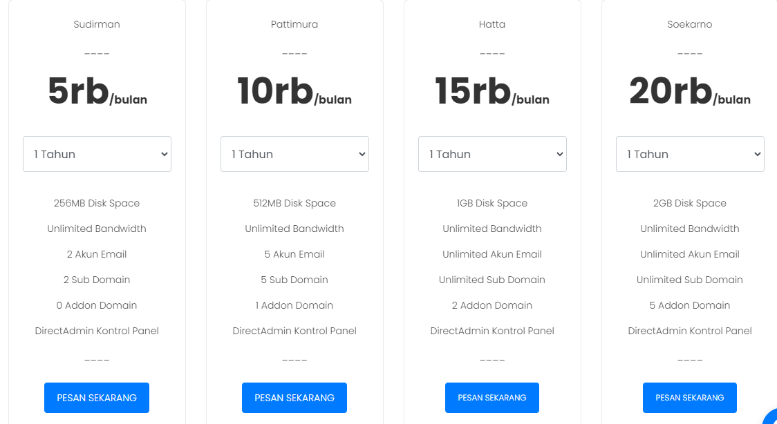 Untuk pricing web hosting murah saat saya membuat review ini dimulai dengan 5 ribu/bulan.