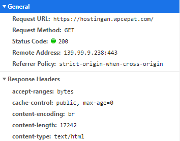 Content encoding br mengindikasikan server telah menerapkan brotli compression.