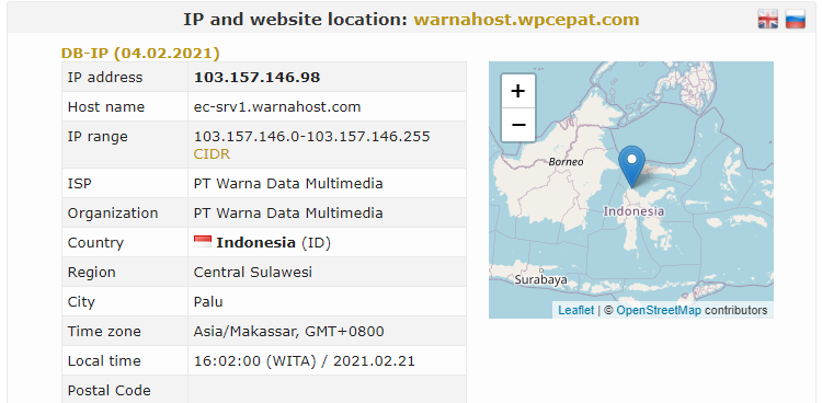Lokasi server yang dimiliki oleh warnahost adalah indonesia, tepatnya berada di kota palu, sulawesi tengah.