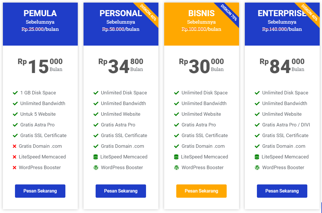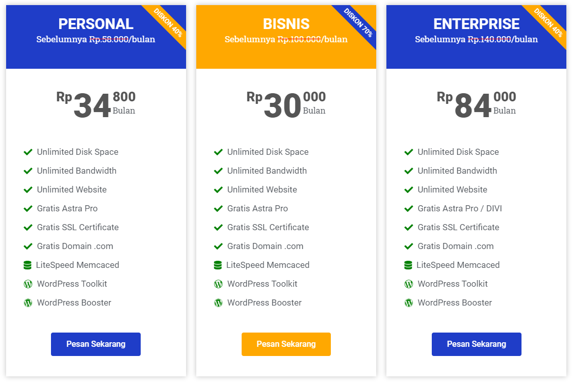Pricing WordPress hosting saat saya membuat review ini dimulai dengan 34 ribu/bulan.