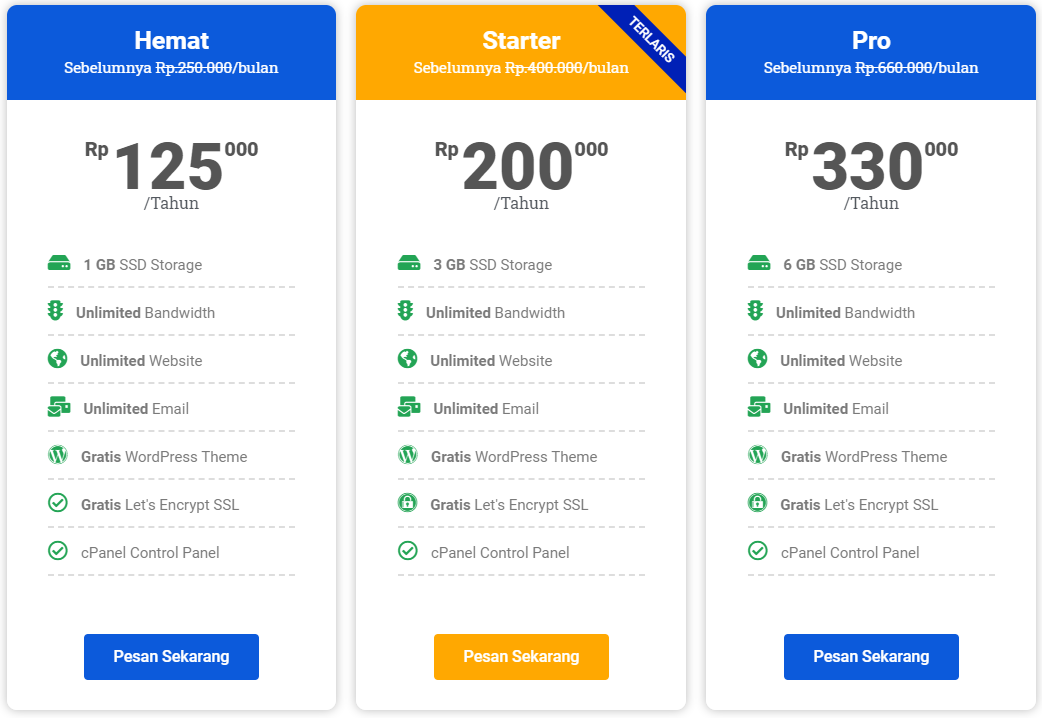 Pricing hosting unlimited saat saya membuat review ini dimulai dengan 15 ribu/bulan.