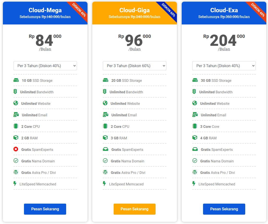 Untuk pricing cloud hosting saat saya membuat review ini dimulai dengan 84 ribu/bulan.